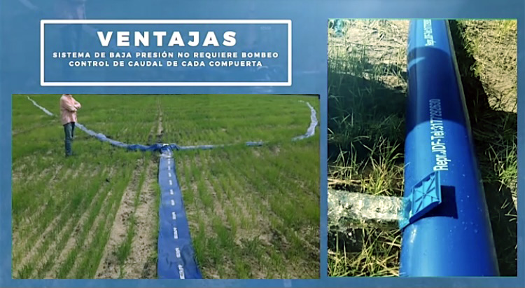 Bajo costo, fácil instalación, reduce el consumo de agua en un 30% y el tiempo de moje en un 70%, Evita la erosión del suelo, evita el crecimiento de malezas, evita las pérdidas de agua por infiltración y evaporación, reduce los costos de mano de obra en un 60%, Fácil control de agua con mayor productividad.